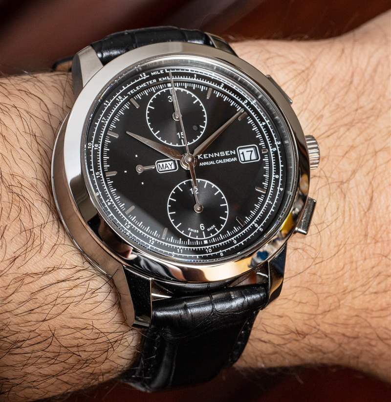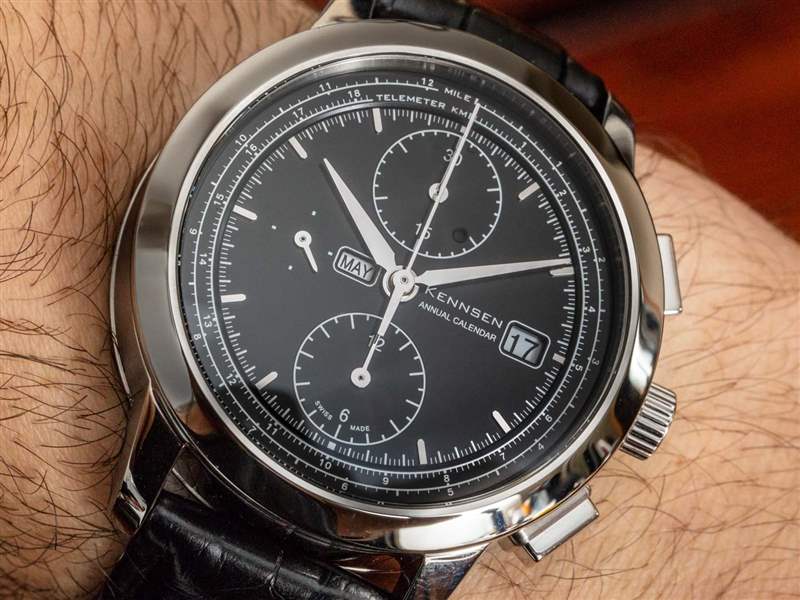 Kennsen 顯然在紙上設計年歷計時碼表時做足了功課,但通常情況下,一旦將手表戴在手腕上,就需要進行更多的改進。一個完美的例子是計時按鈕和表冠的設計。更大的角度計時按鈕是另一個問題的一部分,這使得抓握和拉出表冠變得困難。現在,表冠很難抓住上弦或拉出一兩個位置。要解決這個問題,顯然需要一個不同的表冠——這不是計算機渲染能夠識別的東西。毫無疑問,肯森致力于年歷計時碼表,這就是為什么我相信他們會在不久的將來用這款令人印象深刻的手表改進這些問題。