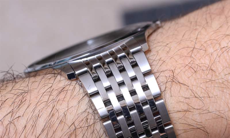 佩戴 Eco-Drive One 是一種獨(dú)特的體驗(yàn)——既積極向上,有時(shí)也令人不安。我說(shuō)后者是因?yàn)榧词鼓愦髦直恚埠鼙。苋菀淄浤愦髦直怼M浵鄬?duì)較輕的舒適的,主要是鋼表殼和表鏈,想想一直戴著一塊更普通尺寸的手表是什么感覺(jué),然后看著你的手腕,感覺(jué)那里沒(méi)有表殼!至少 Eco-Drive One 是這樣的。它只是感覺(jué)太薄了,你的大腦甚至沒(méi)有將這種情況記錄下來(lái)。