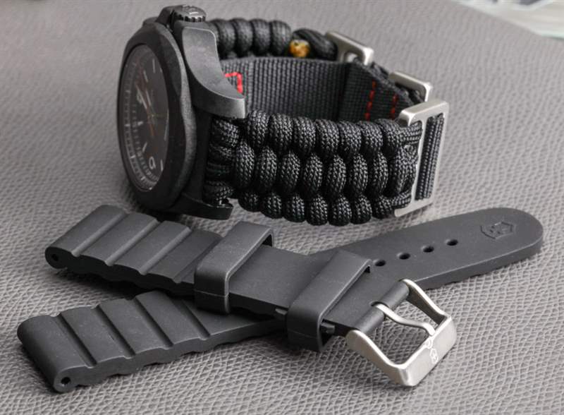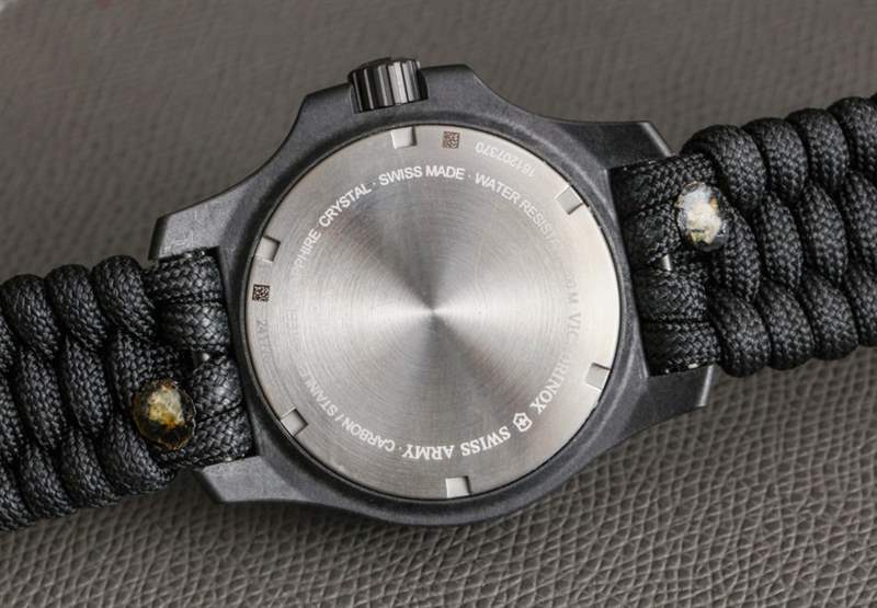 Victorinox Swiss Army INOX Carbon 內部裝有瑞士石英 Ronda 機芯。它提供時間和日期,適用于大多數情況。同樣,純粹主義者喜歡在手表中使用機械機芯,但為此,維氏瑞士軍有其他項目。實際上,機械機芯無法承受 INOX 生存所需的耐用性測試,因此在這種情況下,石英機芯實際上更適合手表的既定用途。