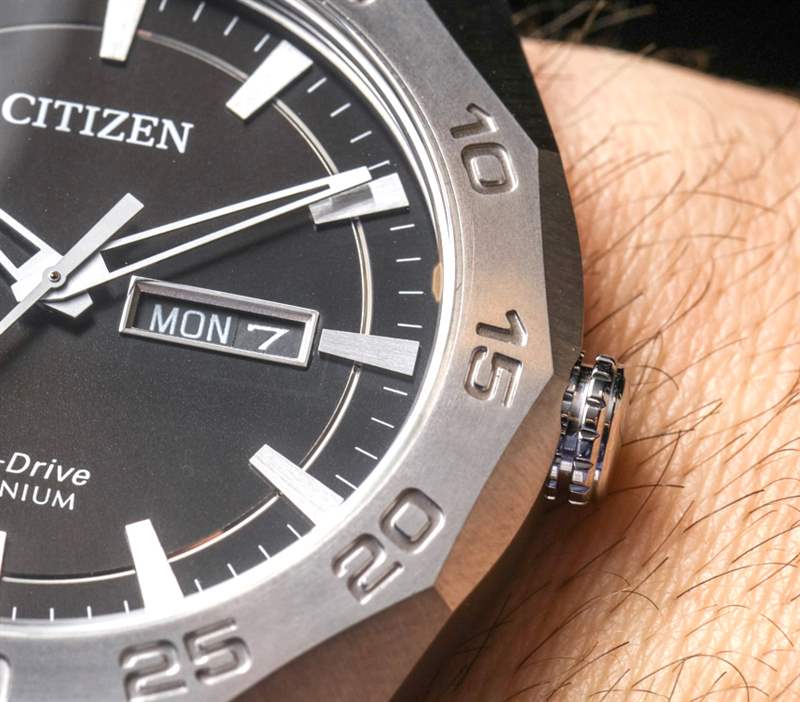對我來說,這個表殼設計方向始于幾年前價格更高的Citizen Eco-Drive Satellite Wave F100 手表系列(在此處查看)。在那里,您看到西鐵城探索了這種美妙的現代風格,在我看來,它很好地展示了品牌的實力。F100 也是鈦合金的,但即使價格更貴,我也不認為它是超級鈦合金。因此,Citizen Eco-Drive Super Titanium AW0060 系列的價值是非常真實的。再次提醒您,Super Titanium 的重點在于其耐刮擦性。普通鈦既堅固又輕巧,但很容易劃傷。Super Titanium 經過涂層處理,其抗劃傷性(表面強度)是普通鈦的五倍。