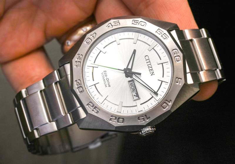 戴在手腕上的 Citizen Eco-Drive Super Titanium AW0060(公認的通用名稱,不會賦予手表個性)寬 44 毫米,非常薄,佩戴也非常舒適。表殼防水深度達 100 米,并覆有礦物(相對于藍寶石)水晶。安裝藍寶石水晶會花費更多的錢,鑒于這個價格,我認為礦物水晶是可以接受的。