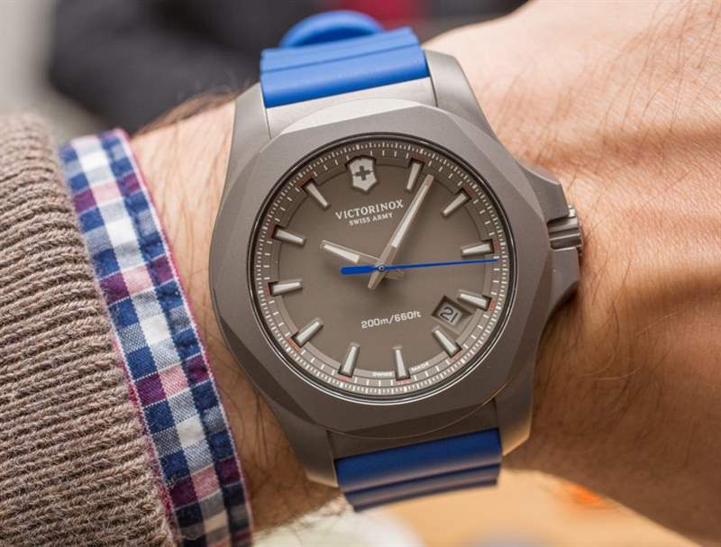 與最初的 INOX(此處為 aBlogtoWatch 評論)一樣,Victorinox Swiss Army INOX Titanium 表殼寬 43 毫米。如果您還記得,這就是 Victorinox Swiss Army 投入數十次壓力測試的手表。無論是否矯枉過正,INOX 手表系列都可以經受住很多考驗,包括老化、沖擊、寒冷、高溫和極速。Steel 很好地處理了一系列測試,據我所知,該品牌現在已經對 Victorinox 瑞士軍 INOX Titanium 進行了相同的測試(并且可能通過了)。