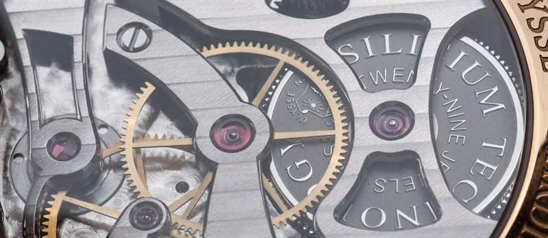 該系統安裝在陀飛輪中似乎只是“錦上添花”,為調節系統增加工藝價值,我認為陀飛輪在性能方面并沒有真正的好處。話雖如此,將精美的雅典表錨式擒縱機構放入陀飛輪框架中,并每 60 秒繞軸自轉一次,有助于為手表帶來更多奢華的街頭信譽。就個人而言,雅典表的內部系統和性能“魔法”給我留下了更深刻的印象,在機械機芯的硅部件方面,這可以說是最先進的。