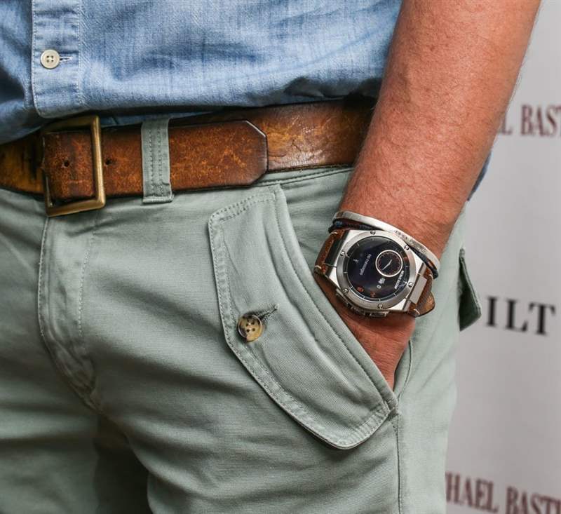 Michael Bastian 告訴我,他深受汽車儀表板儀表外觀和觸感的啟發(fā)。他喜歡許多現(xiàn)代汽車將技術(shù)與熟悉的東西結(jié)合在一起的方式,因?yàn)樗鼈兘Y(jié)合了模擬指針和數(shù)字屏幕。出于這個(gè)原因,Michael Bastian MB Chronowing 表盤有一個(gè)專門的時(shí)間顯示,在 LCD 屏幕上使用模擬指針。實(shí)際上,這個(gè)屏幕有時(shí)也會(huì)顯示其他信息。手表背面的底蓋上深深刻有邁克爾·巴斯蒂安 (Michael Bastian) 的“翅膀”標(biāo)志。在大多數(shù)情況下,質(zhì)量?jī)?yōu)于大多數(shù) 350 美元的手表。事實(shí)上,我要說的是,許多生產(chǎn)“時(shí)尚”智能手表的科技公司在質(zhì)量方面確實(shí)給傳統(tǒng)時(shí)尚手表行業(yè)帶來(lái)了嚴(yán)重的經(jīng)濟(jì)損失。