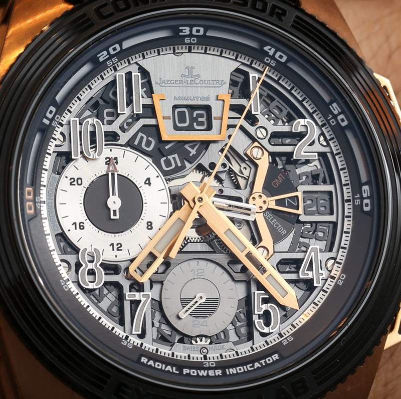 位于時針和分針旁邊的是一根附加指針,用作第二時區。它不是真正的 GMT 指針,因為它以 12 小時格式指示時間,但它在 6 點正上方確實有一個專用的 24 小時表盤,用于指示第二時區是上午時間還是下午時間. 靠近 3 點鐘的位置是一個日期窗口,緊靠日期窗口的左側是表冠操作的功能選擇器(當您按下表冠時,它會循環)。最后,Jaeger-LeCoultre Extreme Lab 2 具有動力儲存指示器。在其他一些手表中復制時,Jaeger-LeCoultre 使用 Master Compressor Extreme Lab 2 首次推出其“徑向功率指示器”,當動力儲存從“00”到整整60小時。
