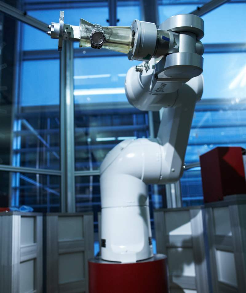 勞力士自動化實力的中心是主供應室。大量的零件列由機器人仆人照料,他們存儲和檢索裝有零件或完整手表的托盤。需要零件的制表師只需通過系統下訂單,零件就會在大約 6-8 分鐘內通過一系列傳送系統交付給他們。