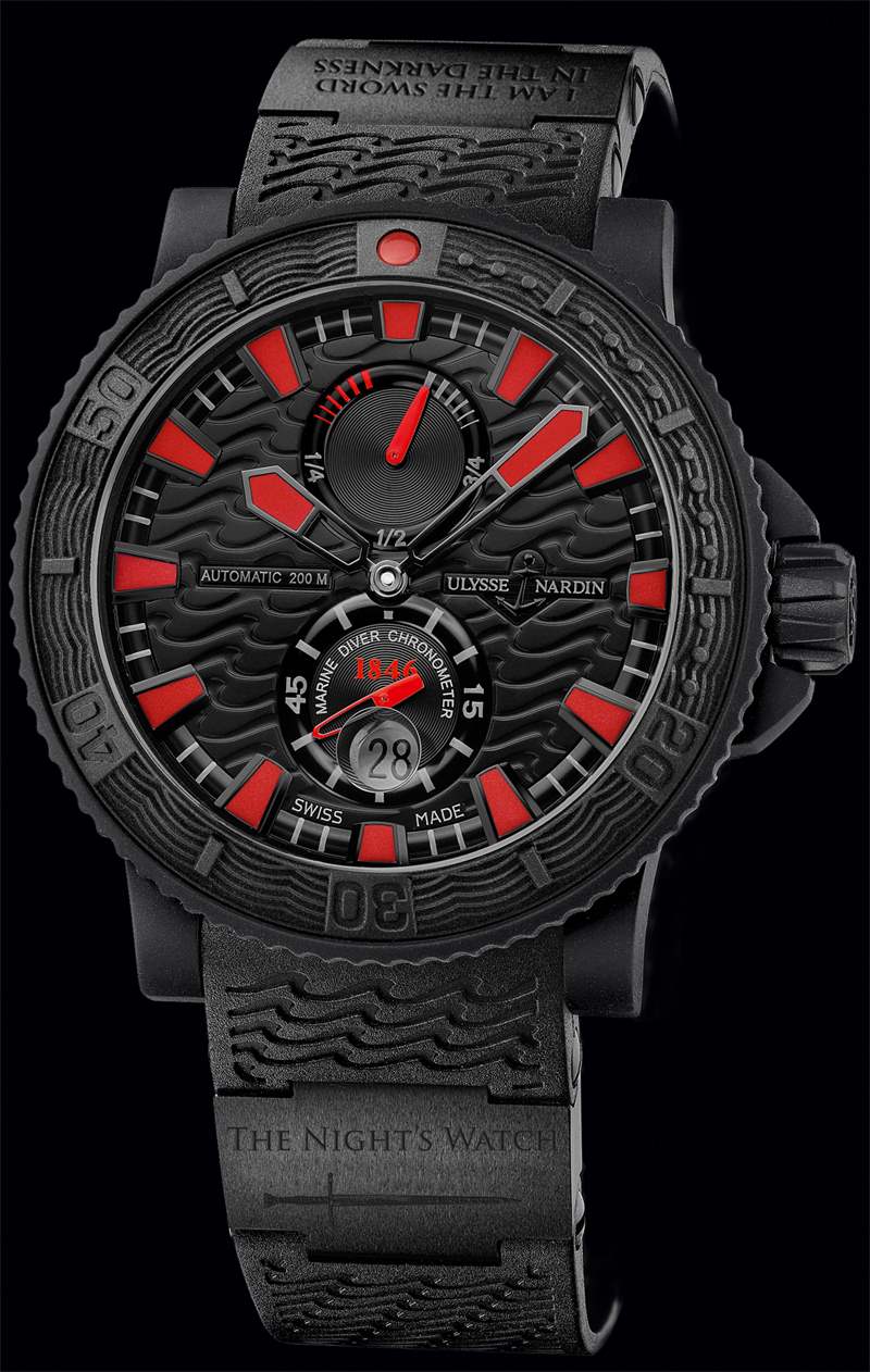 感謝手表制造商Ulysse Nardin,The Night’s Watch 現在有了手表。Ulysse Nardin 與 HBO 合作,為權力的游戲制作了限量版 Marine Diver?。前機械奇幻的中世紀世界現在在流行的有線電視節目中栩栩如生,現在有了自己的時計。只是不要期望在 Jon Snow 或守衛“隔離墻”的尊貴男子和囚犯的獨身教團的其他成員手腕上看到這件作品。