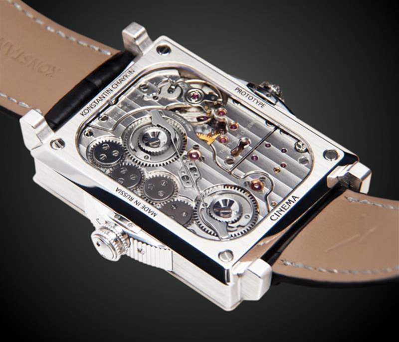 Cinema 手表最美妙的地方可能是它的設計類似于老式電影攝影機和放映機??邓固苟 げ榻?(Konstantin Chaykin) 用一系列帶齒邊緣的方形外殼將拋光金屬與黑色表面混合在一起,通過各種旋鈕、調節器和防滑表面重現復古相機的感覺。忠實于概念,Cinema 表殼采用鋼質、琺瑯和黃銅材質。表殼寬 37 毫米,高 47 毫米,厚度僅為 12.2 毫米。廣告留言廣告信息結束
